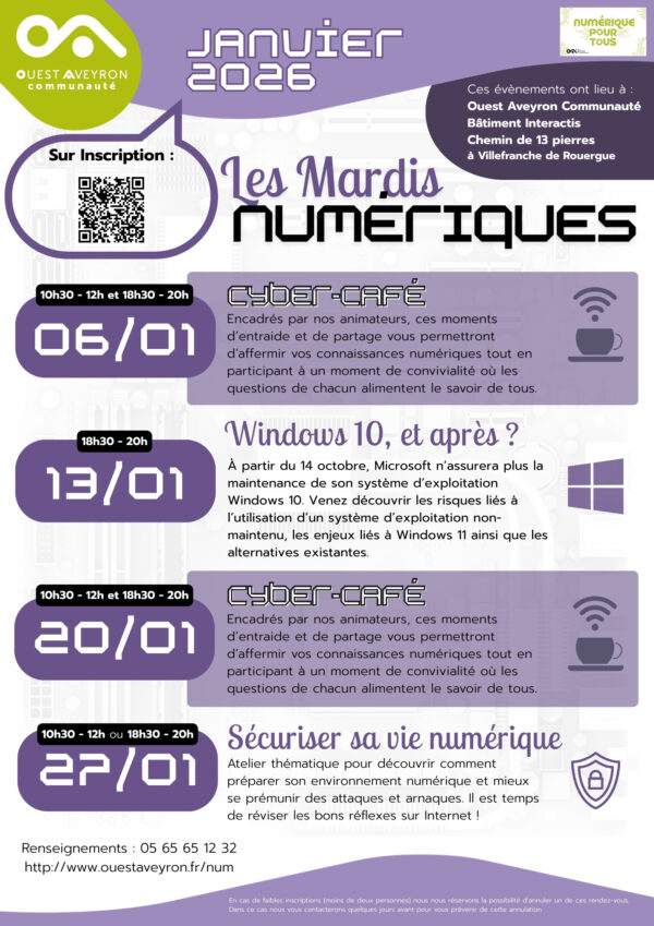 Ouest Aveyron Communauté par son action « Numérique pour Tous » vous propose une nouvelle rencontre autour de l’IA : Vendredi 16 janvier à 18h à la médiathèque de Villeneuve L’intelligence artificielle générative suscite beaucoup d’engouement ces dernières années. Ces « modèles » s’immiscent dans de nombreux secteurs d’activité et nous interrogent sur notre rapport […]